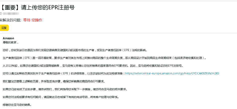 首先,先明确一点,EPR是亚马逊针对法国以及德国卖家提出的强制性法规,不管有没有收到邮件的卖家都需要注册,2022年1月正式生效,一旦被亚马逊审核查询到不符合注册要求,会被强制下架产品。
