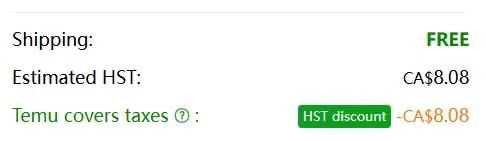 此前,该包税活动已覆盖加拿大非本地仓发货商品:用户在TEMU购物时,在支付页面上无需支付消费税。TEMU会承担这笔相应的税款,商家也无需担心。