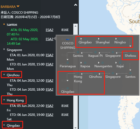从青岛上海宁波和深圳出发名为“BARBARA”轮的集装箱船,因为船上10名船员被确诊感染新冠肺炎,同样也被要求在巴西桑托斯港(Santos)就地强制隔离!这次发生多名船员确诊的“BARBARA”轮目前服务于业界知名的拉丁美洲航线EAS2。该轮在5月1日挂靠巴西桑托斯港(Santos),并于5月2日被带到锚地,随后被安排病毒检测。5月9日测试结果公布,船上共有10名船员已被确诊感染新冠肺炎。在发现多位船员检测结果呈阳性后,被要求就地隔离。隔离至少要到5月17日结束!这也意味着船被隔离的时间将不少于两周!