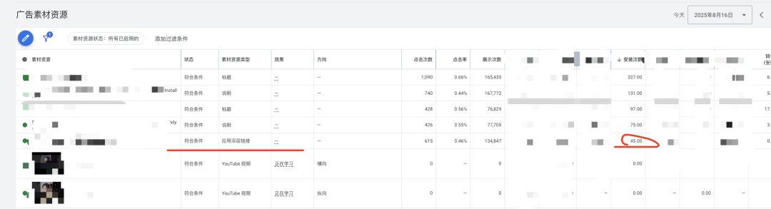 Google的消耗,在campaign层级,一般是可以和adgroup之间的消耗,曝光等求和相等,但是再素材层级上,大多数时候对不上。