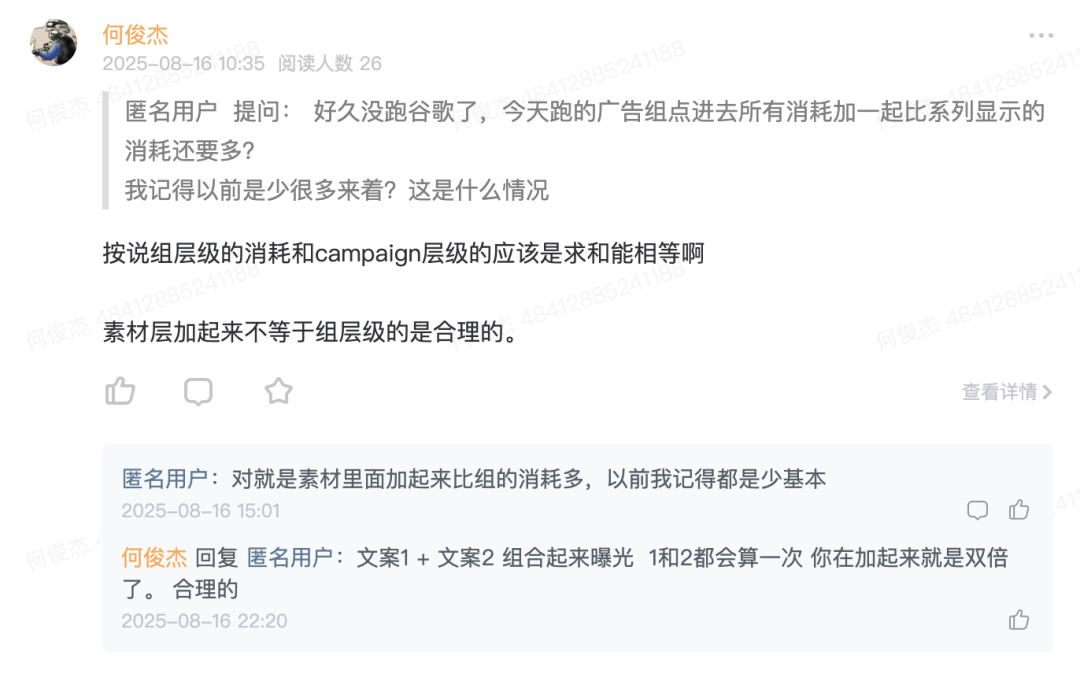 1,如果素材层级消耗,曝光求和大于adgroup,可能是因为比如文案1+文案2被组合,或者文案1+图片1组合起来产生的曝光转化,实际在素材层级,两个被组合的素材都会计算一次,最终一次曝光/转化回本计算两次。