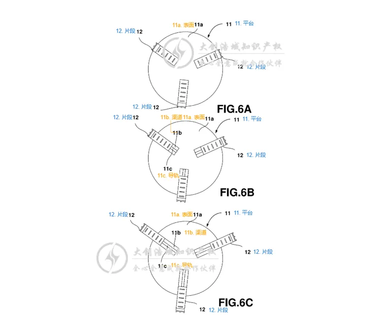 具有一个平台:具有顶面和底面,顶面上开有多条通道,每条通道都从平台的边缘向中心方向部分延伸(即不是贯穿整个平台中心的通槽)。