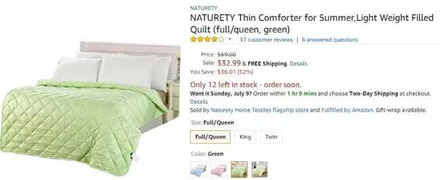美国消费者很重视一些人性化和功能型的家纺用品,特别是对于一些新型的产品,有着很强的购买欲望。比如毛巾、浴巾以无捻纱、竹纤维、甲壳素抗菌纤维等高档产品销量最大。其中价格、色彩、款式、原料、手感和洗涤性等是影响购买具体家纺产品的主要因素。比如亚马逊美国站点上20-30美金一套的产品,是国外消费群体最容易接受的。