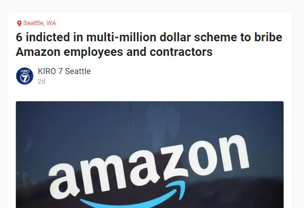 这几天,亚马逊曝出惊天丑闻,美国司法部指控亚马逊 6 名内部雇员,指控内容是 :6 人合伙以超过 10 万美元贿赂其他亚马逊员工共同参与承包商计划,并收费帮助第三方卖家在亚马逊在线市场上获取了价值超过 1 亿美元的“不公平竞争优势”。