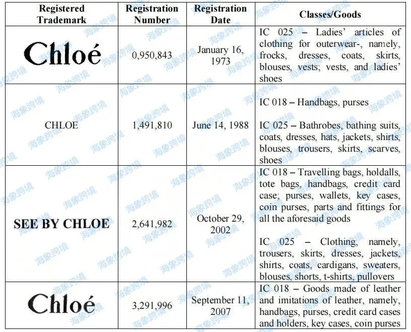 原告 CHLOE 是一个由Gaby Aghion于1952年在巴黎创立的奢侈品牌,以开创“奢侈成衣”概念而闻名,风格自然飘逸、浪漫柔美,主营高端女性服饰、配饰以及香水。以下商标注册在多个类目,未经允许不得使用!