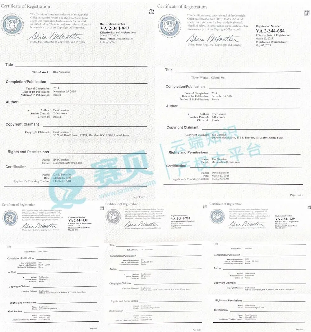 赛贝在自主研发的TRO案件查询系统获悉,罗斯知名超现实主义艺术家 Eva Gamaiun 已委托Keith律所,向美国伊利诺伊州北部地区联邦法院提起版权侵权TRO诉讼,案件编号为25-cv-14361,诉状于 2025 年 11 月 24 日正式立案。此次维权针对5件原创超现实主义插画作品,涉及艺术印刷品、海报、贴纸等多个热门品类。