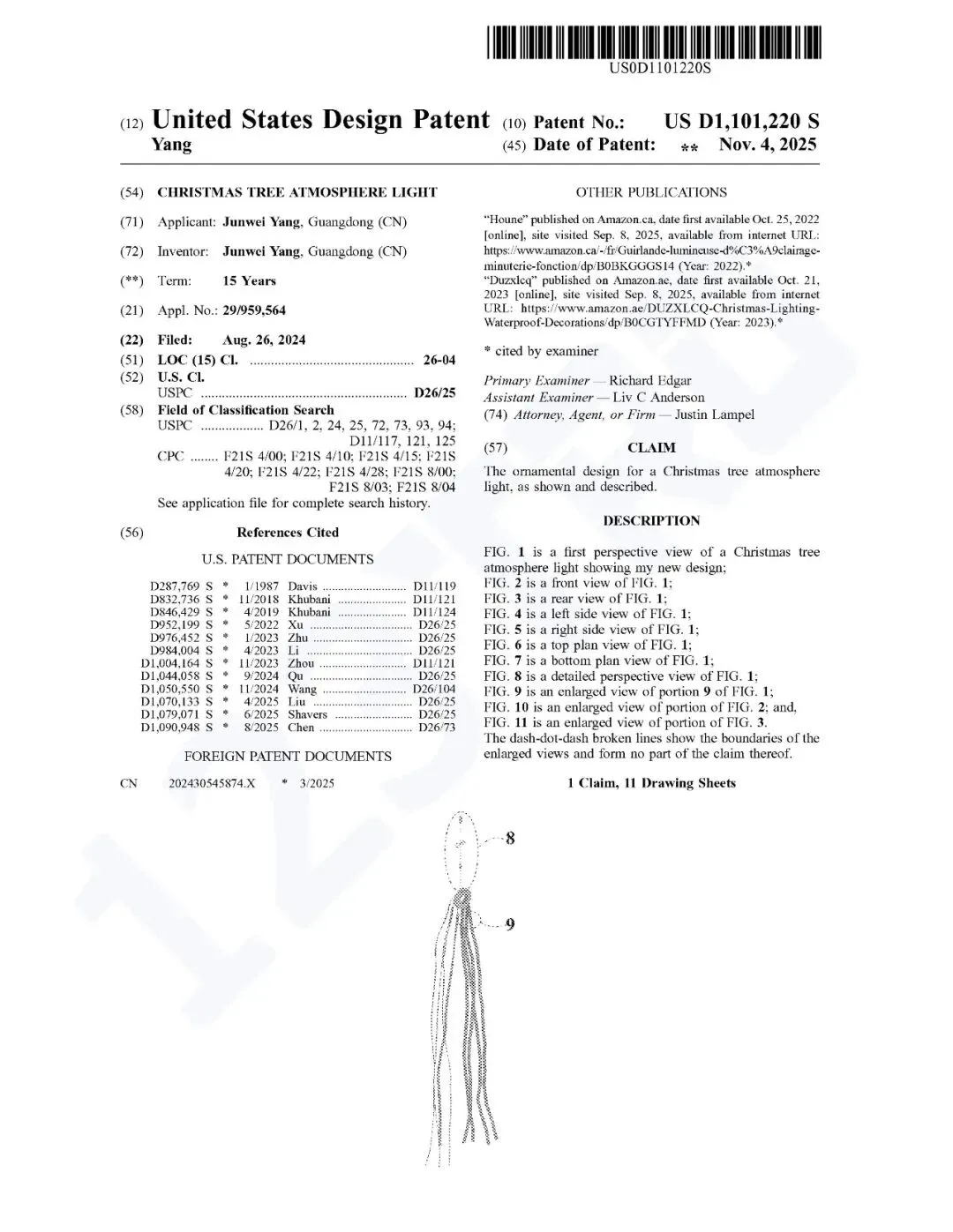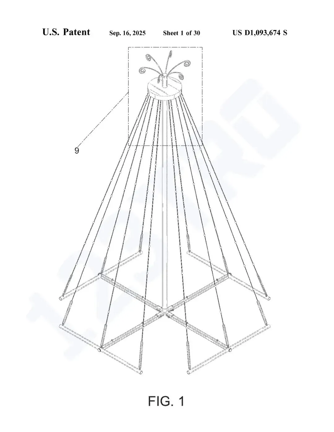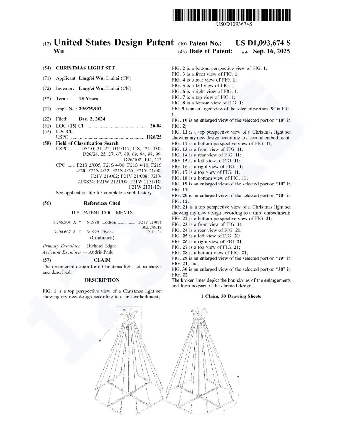 这个专利外形和目前市面上比较常见的节日灯还是有一定的区别,而且暂时在网上找不到同款
