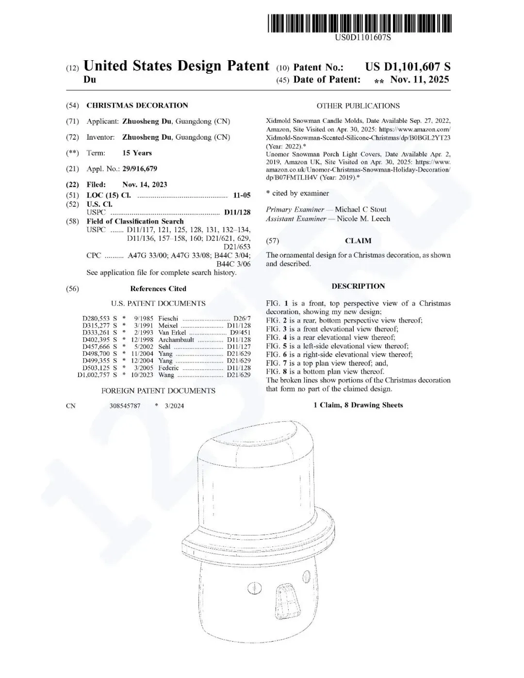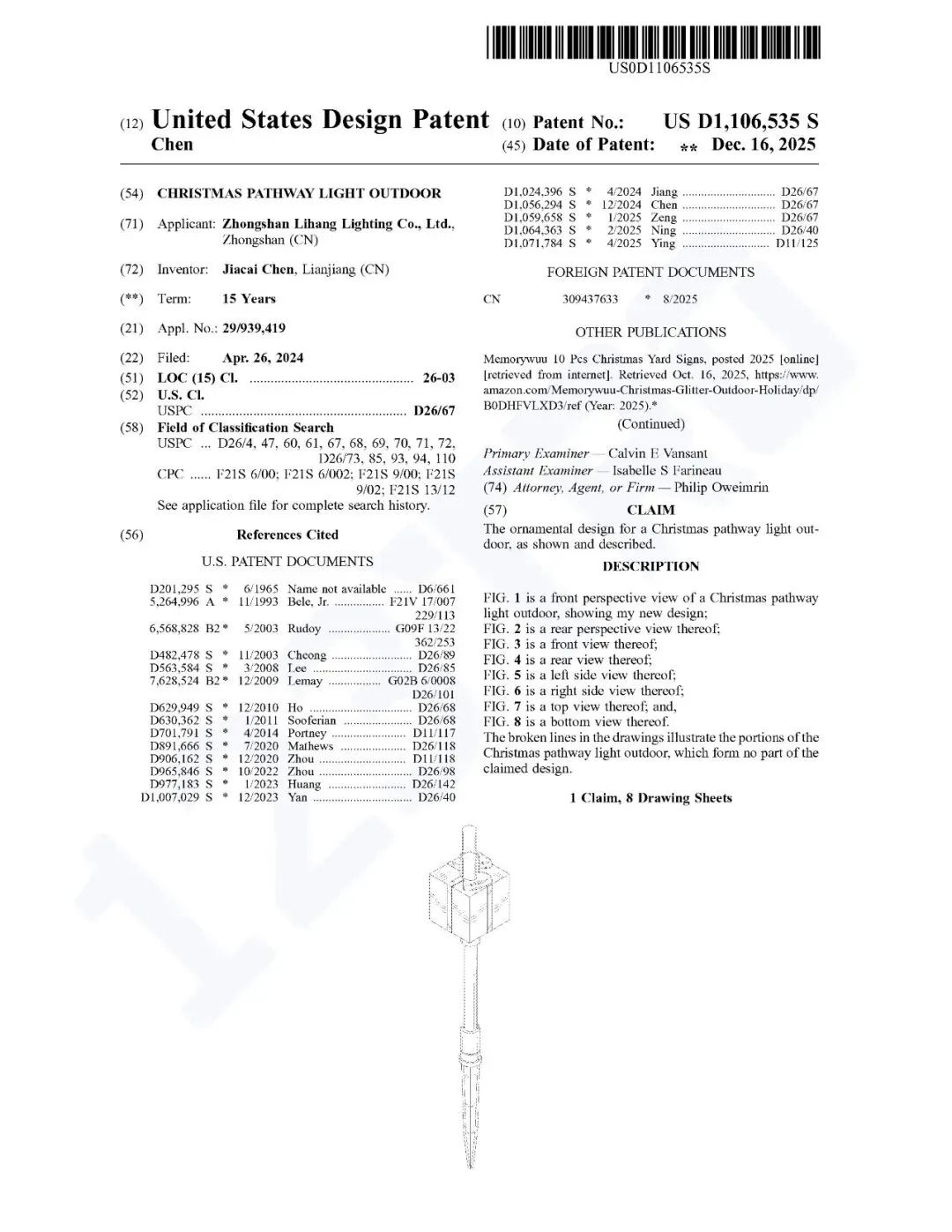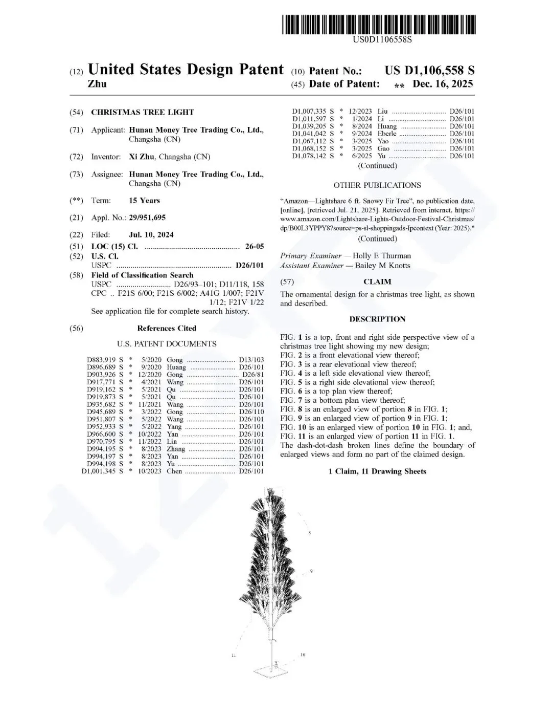 这个专利外形和目前市面上比较常见的节日灯还是有一定的区别,而且暂时在网上找不到同款