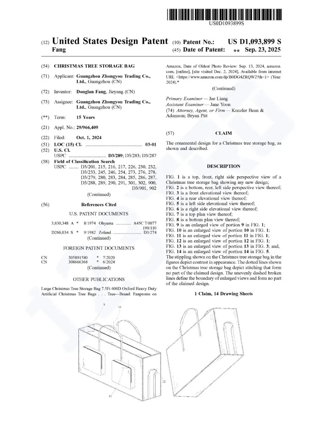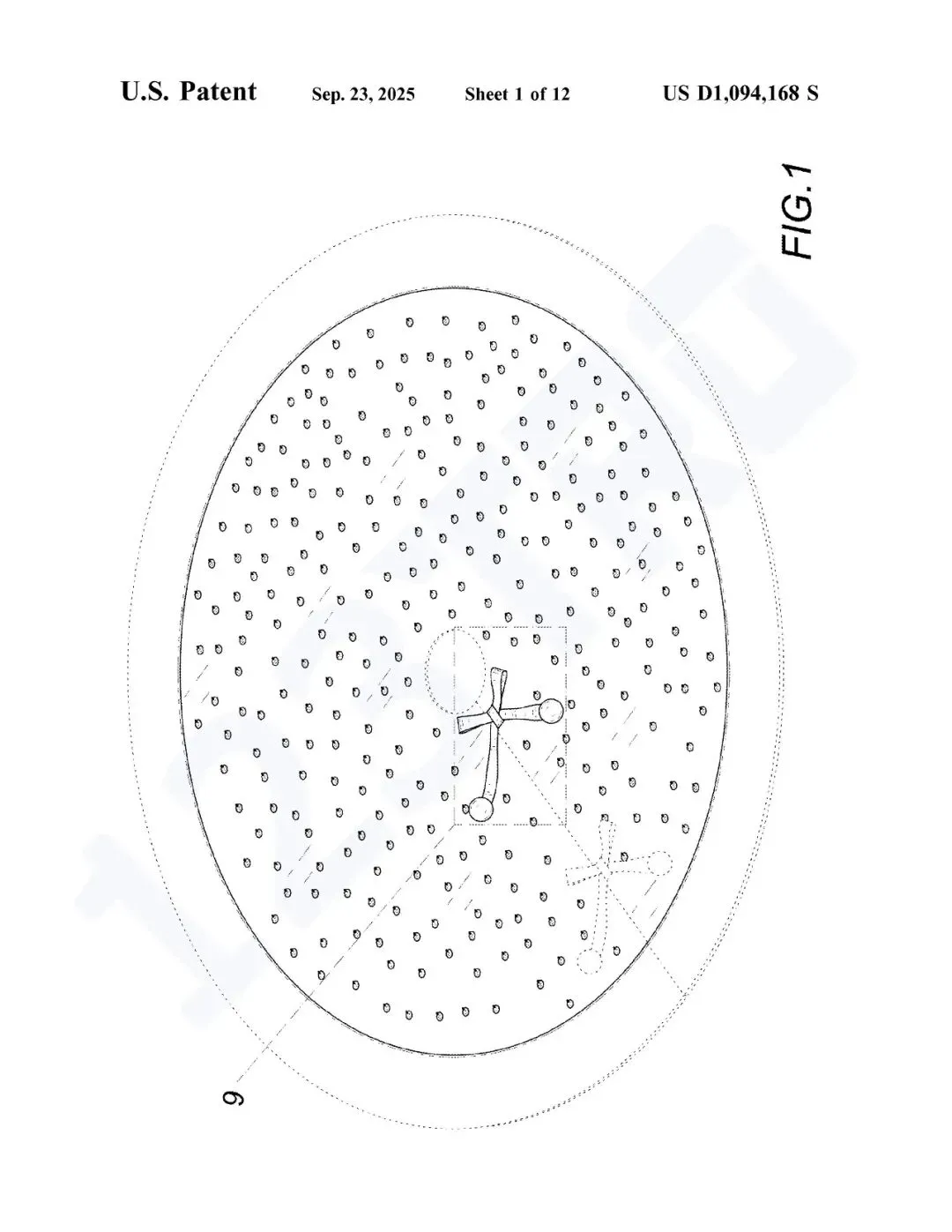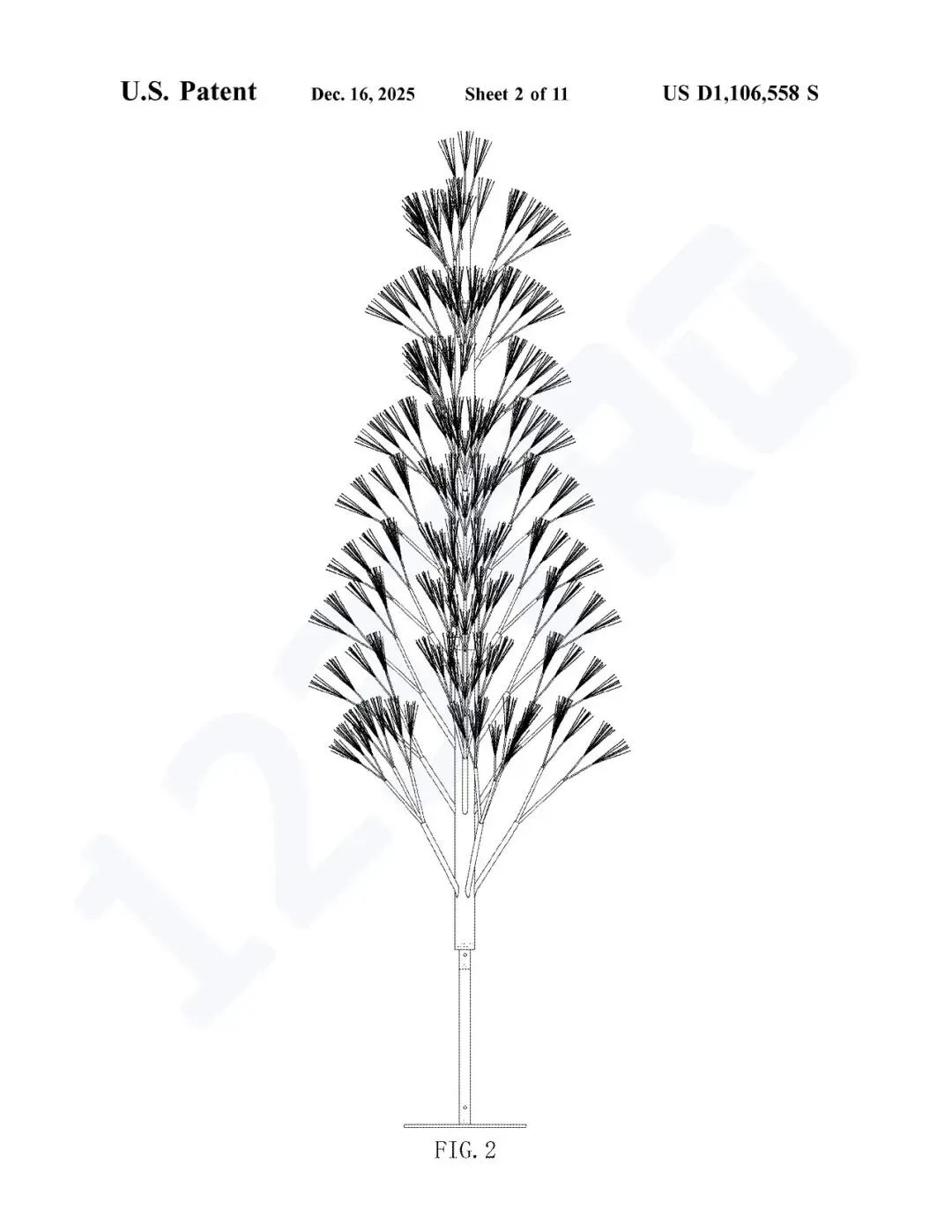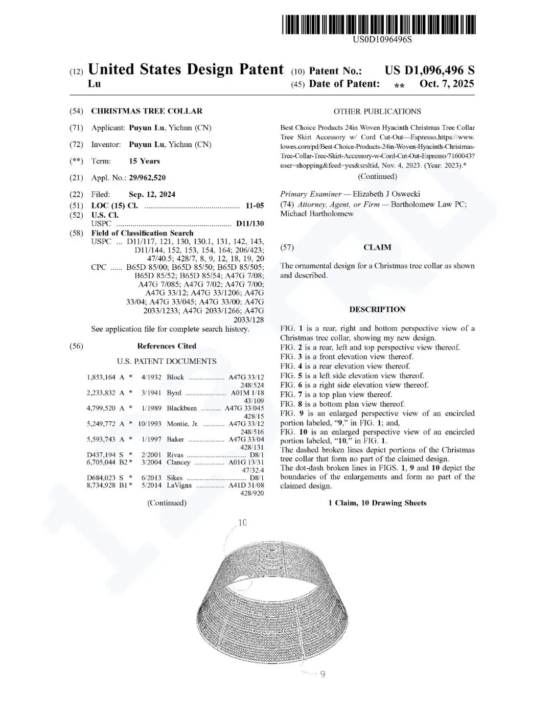 这个专利的外观主要是呈圆形的圣诞树地毯,那一个个圈圈就是blingbling的亮片,再加上衔接处的雪球蝴蝶结