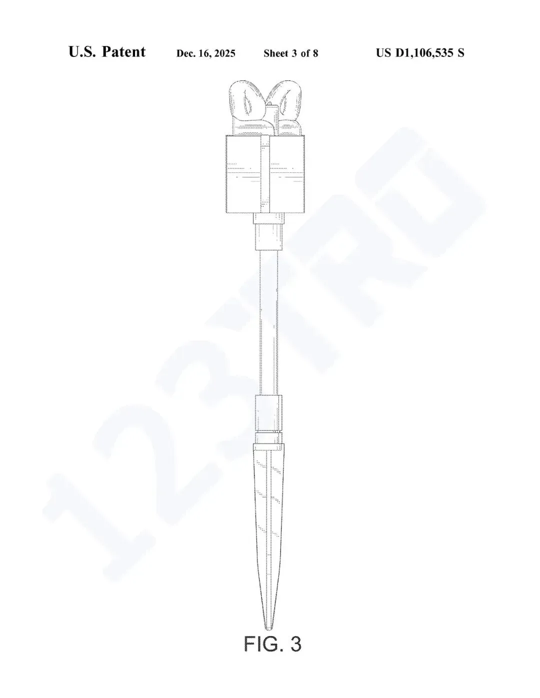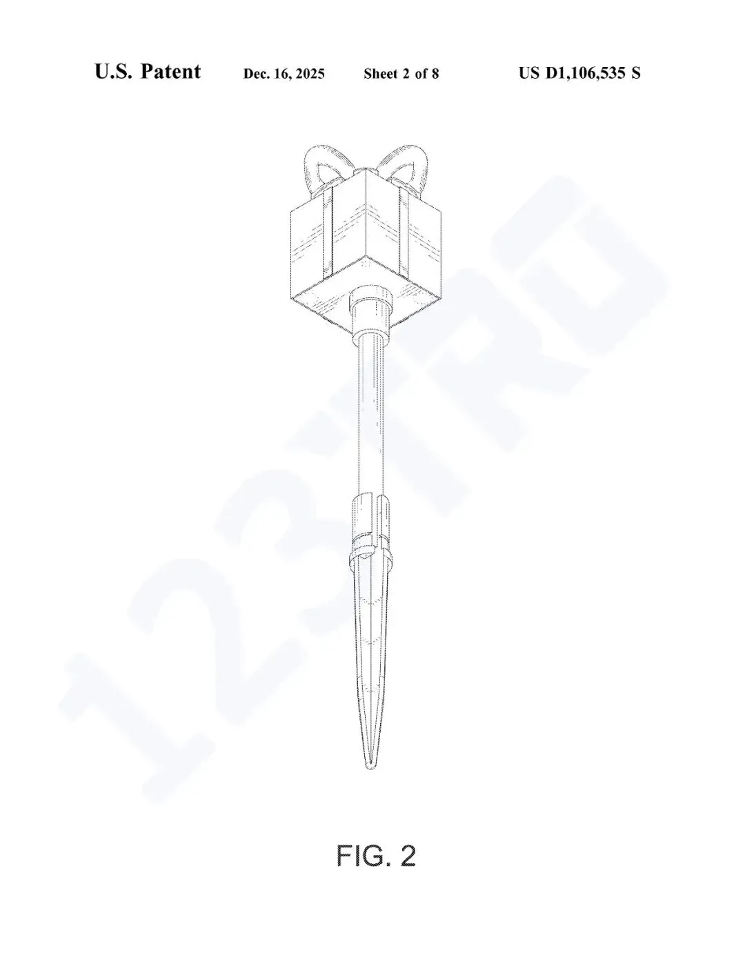 依然暂时找不到具体实物图,但从专利书上看得出是礼物盒外形的插地灯