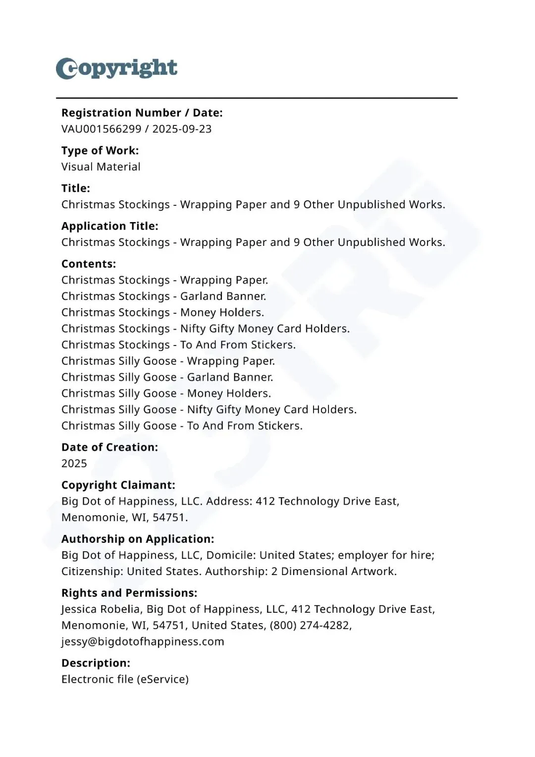 持有人:Big Dot of Happiness, LLC,派对用品设计制造商