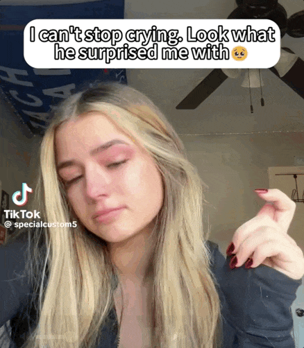 煽情类的礼物分享视频在开场黄金前3秒一般都会用“I can't stop crying. Look what he surprised me with🩷😭”,配合一个泪流满面的形象,给观众留下感人至深的初印象,并且拉满观众的好奇;然后是礼物本体的多角度展示,最后(可能有)配一个限时优惠代码。感动落泪、礼品展示和促销码可以说是礼品类推广视频的三板斧。
