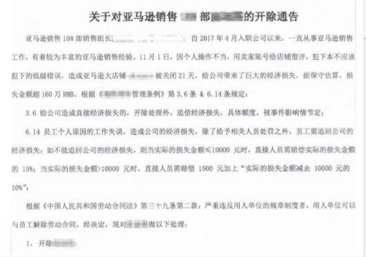 大早,一条关于深圳市某跨境大卖对亚马逊销售XX部XX开除通告刷爆朋友圈。