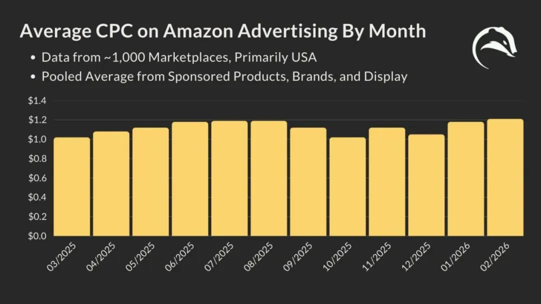 拉通来看,目前亚马逊广告的CPC比去年同期高出 0.06 美元,今年2月的CPC(1.21美元)甚至超过了去年Prime day(来源:Ad Badger),再创新高。可以预见,今年不少类目的CPC将进入“4时代”。