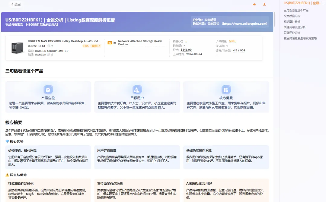 AI-Listing全景分析报告,文案分析部分截图