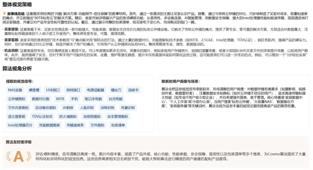 这部分的亮点是系统会结合亚马逊Cosmo 算法,进行亲和度评分,看看亚马逊的视觉算法能不能“看懂”图片内容(如下图所示)。