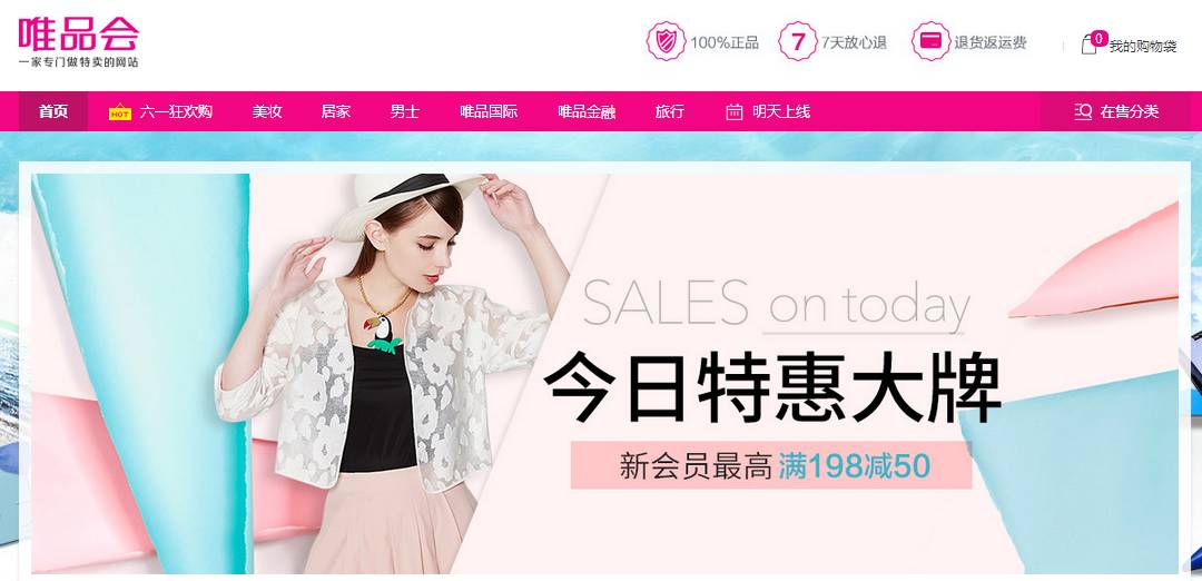 简介:唯品会,“一家专门做特卖”的网站,2014年9月开通首个正规海外快件进口的“全球特卖”业务,商品囊括服装、化妆品、家居、奢侈品等上千品牌。