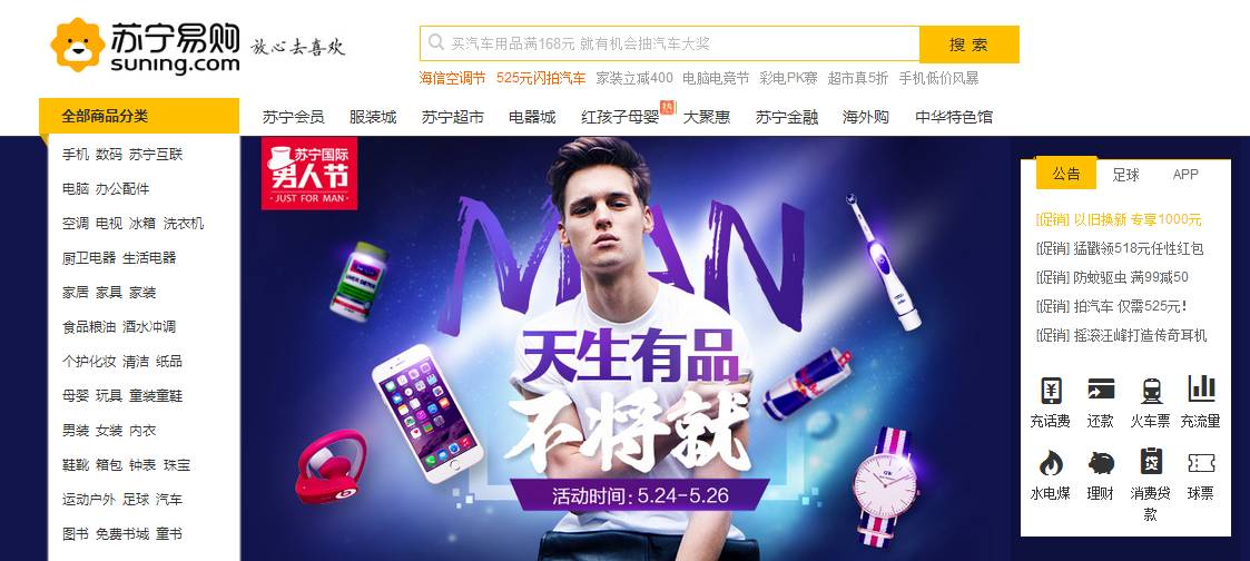 简介:苏宁易购,是苏宁云商集团股份有限公司旗下新一代B2C网上购物平台,现已覆盖传统家电、3C电器、日用百货等品类。