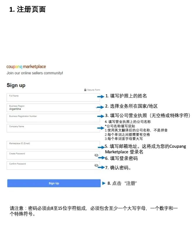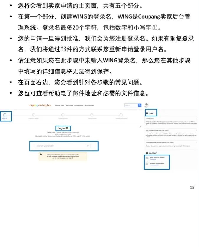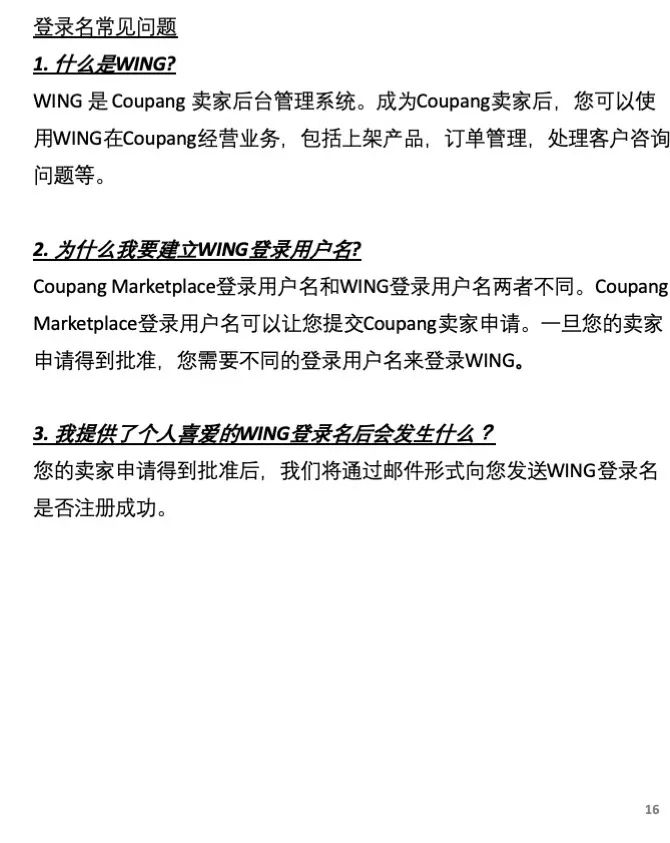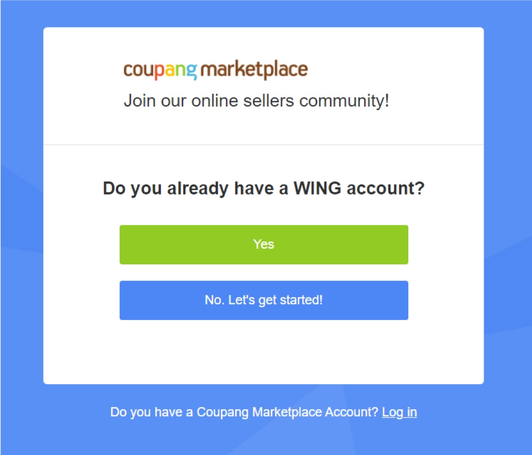 询问您是否已经有WING的账户,WING是Coupang卖家后台管理系统。 如果您是新卖家,请点击“否,立即注册”按钮。