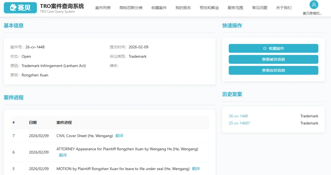 目前案件还未有重大进展,卖家可以在赛贝TRO案件查询系统免费下载诉状和跟进案件最新进度!(公众号菜单及赛贝知识产权官网均有入口)