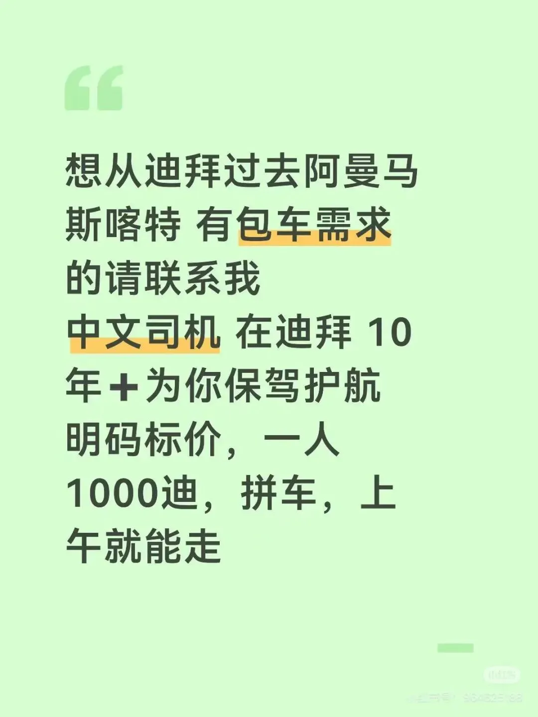 小红书上发布的迪拜-阿曼马斯喀特的拼车帖,单人车位接近2000人民币