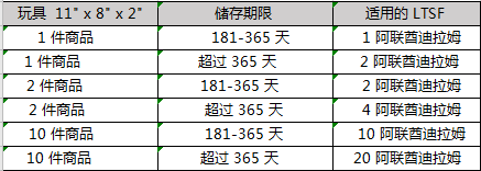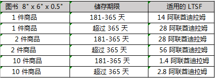 已在亚马逊运营中心存放了超过6 个月的所有可售库存均需支付月度LTSF 费用。以下是长期仓储费率示例: