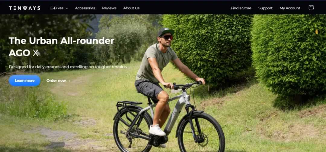 TENWAYS的E-bike设计用于城市通勤和日常运动,主打轻便性和环保出行。公司在美洲设置了多达36个线下销售体验店,并设有海外独立站,强调健康和环保的生活方式。同时,通过海外社媒营销的策略,为独立站吸引了大量流量,驱动产品销量的增长,和品牌声量的打造。