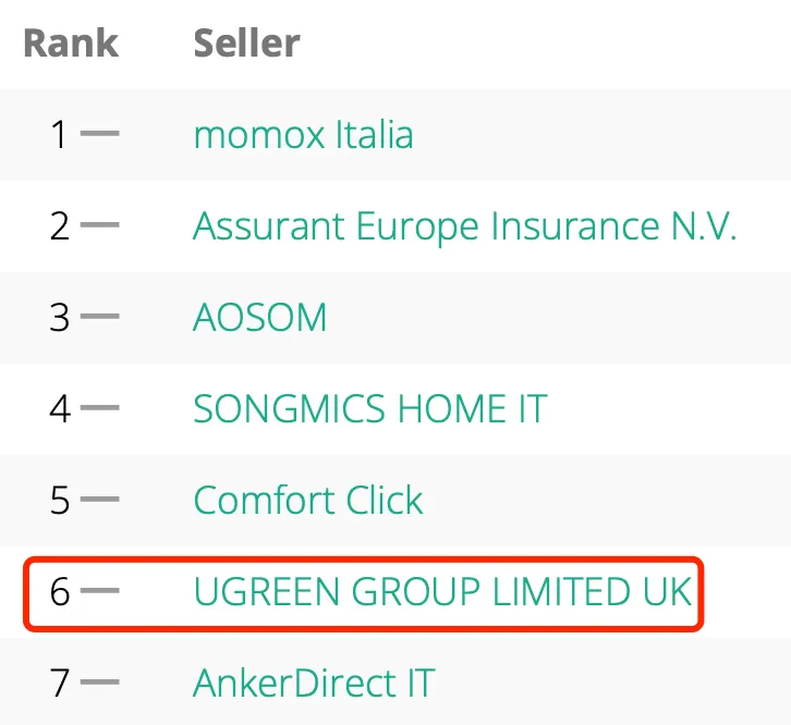 在备受VAT保证金阴霾笼罩的意大利站,绿联排名第6。