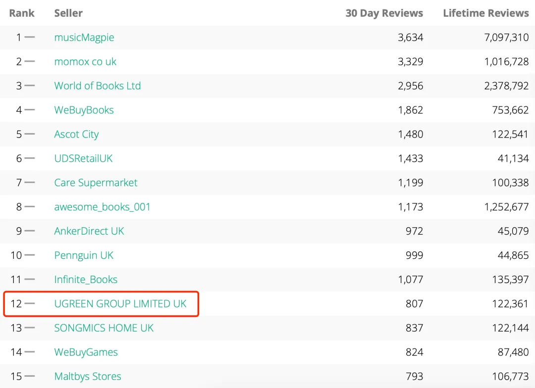 在英国站,绿联排名第12。