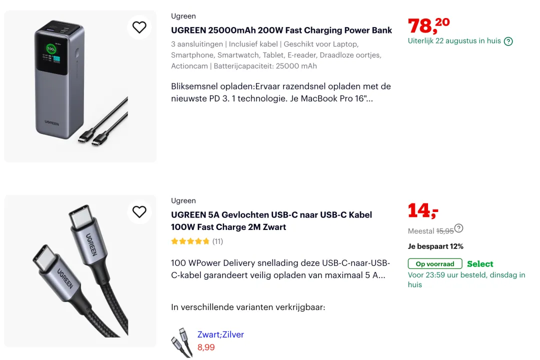 除了亚马逊,在欧洲市场一些相对小众但毛利可观的平台,如主打荷兰和比利时市场的BOL,绿联有着多个爆款,在这里闷声赚利润。