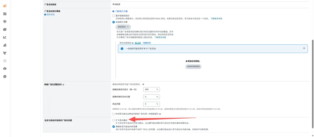 这个设置意味着什么?简单理解就是广告不再只在亚马逊站内展示,还会被系统带到站外投放。带来的直接结果就是曝光量可能增加,但来自站外的点击质量和转化率通常远低于站内流量。 卖家的预算会以前所未有的速度被消耗,而带来的订单增长却微乎其微,还影响广告效果。