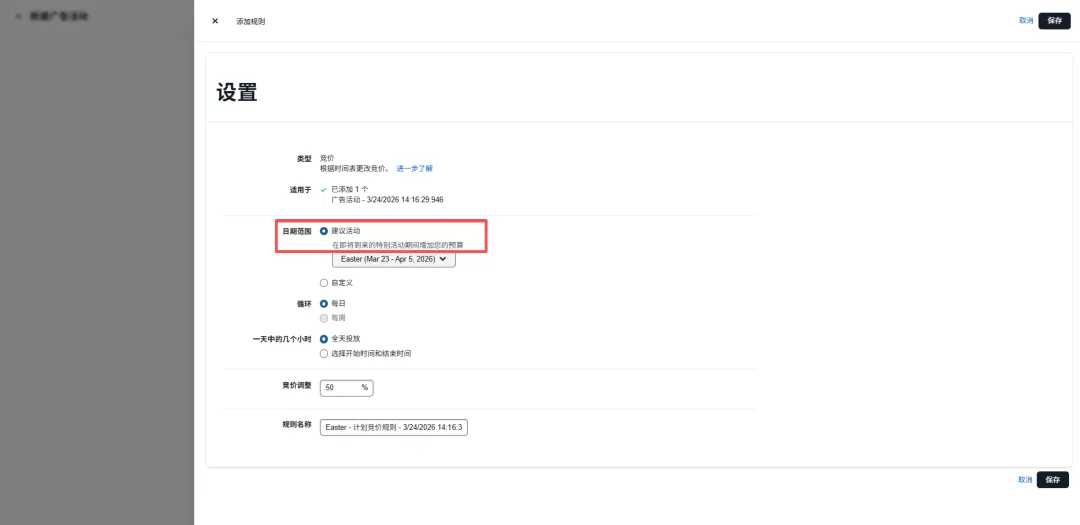 这类设置本质上是:系统自动帮你增加预算(类似时间规则),基于节日节点(大促、会员日等)、流量预期上涨、转化概率提升等在特定时间段提高预算上限或实际消耗。