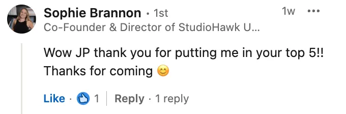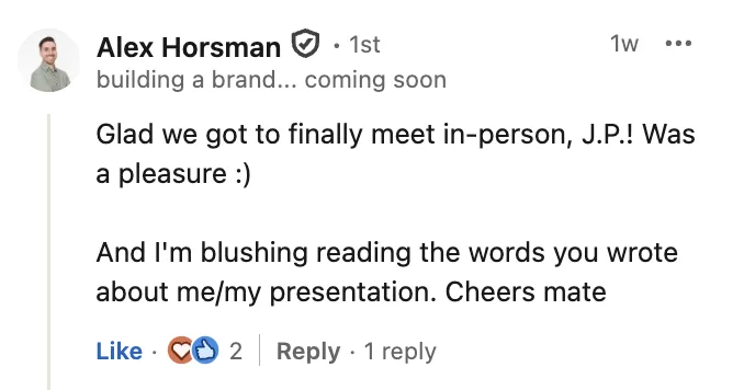 另外,还收到了 Hostinger 公司的Organic Marketing Strategist小小的夸赞:)