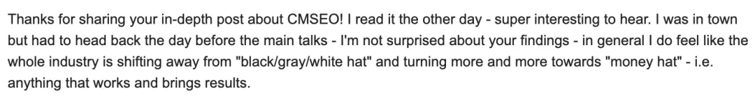 比如:在给SEO圈内朋友回邮件的时候,顺便提了一下我的这篇文章。