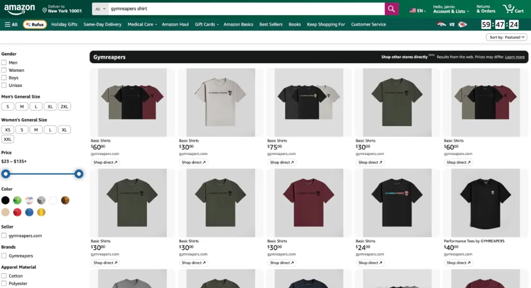 搜索结果中,部分用户已经可以看到类似 “Shop Direct” 的入口。用户点击后,会直接进入该品牌的官网,而不是亚马逊详情页。