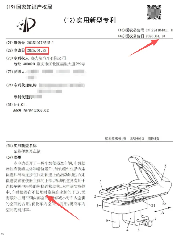 实用新型是策略选择,不是创造性不够。 赛力斯选实用新型,图的是快速拿证(不到一年 vs 发明两三年),先占住“车载马桶”这个赛道的舆论和商业先机。