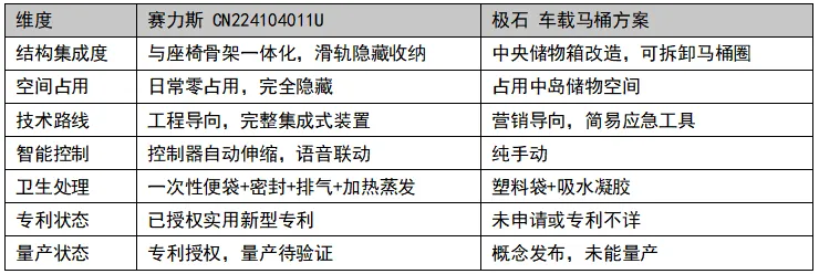 2026年4月10日,赛力斯“车载便器及车辆”实用新型专利(CN224104011U)正式获批,立刻让汽车圈都炸锅了。其实“车载马桶”这个概念,最早被极石汽车炒热,但最终拿出国家授权专利的,却是赛力斯。一边是“车里拉屎”的段子满天飞,另一边是行业内的认真讨论:极石喊了那么久却无疾而终,赛力斯这次专利的“车载马桶”,真的能落地量产吗?