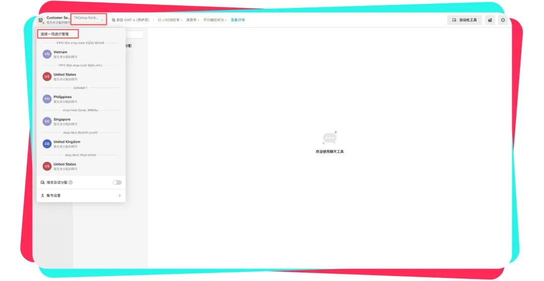 • 客服权限范围:客服在店铺抽屉内仅能查看自己有权限的店铺/站点信息,无权限的店铺将不展示选项。