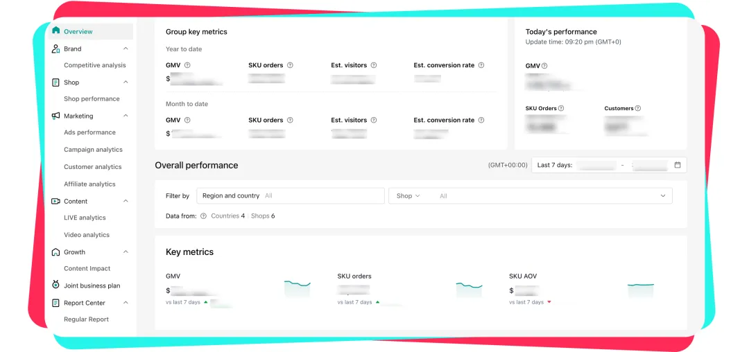 Brand Portal是专为多店经营商家打造的集团化数据分析中心。它可以将您在全球的所有店铺经营数据进行汇总展示,提供全局视角的业务洞察,帮助您的管理团队高效监控经营状态,提升战略决策能力。
