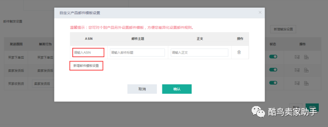 为了辅助卖家在旺季当中应季产品的销售,酷鸟智能索评在邮件发送的规则上有了重大突破,除了常规产品的通用邮件及模板之外,卖家可以根据店铺内应季产品进行特殊设置;