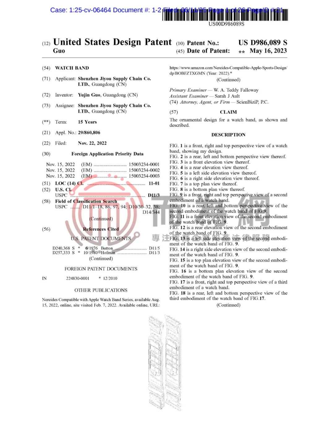 【侵权快讯】25-cv-6464 国人原告表带专利发案!已有45家店铺中招!