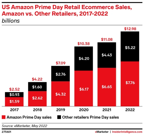 2022年全球Prime Day销售额将达到125.2亿美元,同比增长17.0%。