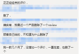 卖家们反映,当前,除了真实购买产生的留评可能会被误伤,让人有点蒙圈之外,许久之前的评论也可能被拉出来再次被检测,例如图中卖家所说的:连续几个月没有新评论的产品,居然也被删除了一个老评论。
