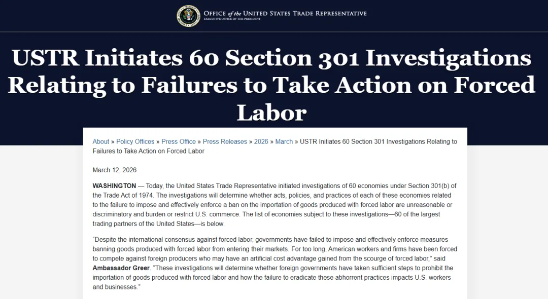 除了301「产能过剩」调查,3月12日,紧接着第二项调查又来了,这次是针对全球约60个国家的“强迫劳动”产品 ,进一步扩大进口限制的范围。从美国此前301调查的执行规律来看,一旦认定被调查方存在“不公平贸易行为”,美国有可能会对其实施加征高额关税、限制进口数量、强化资质审查等限制性措施。