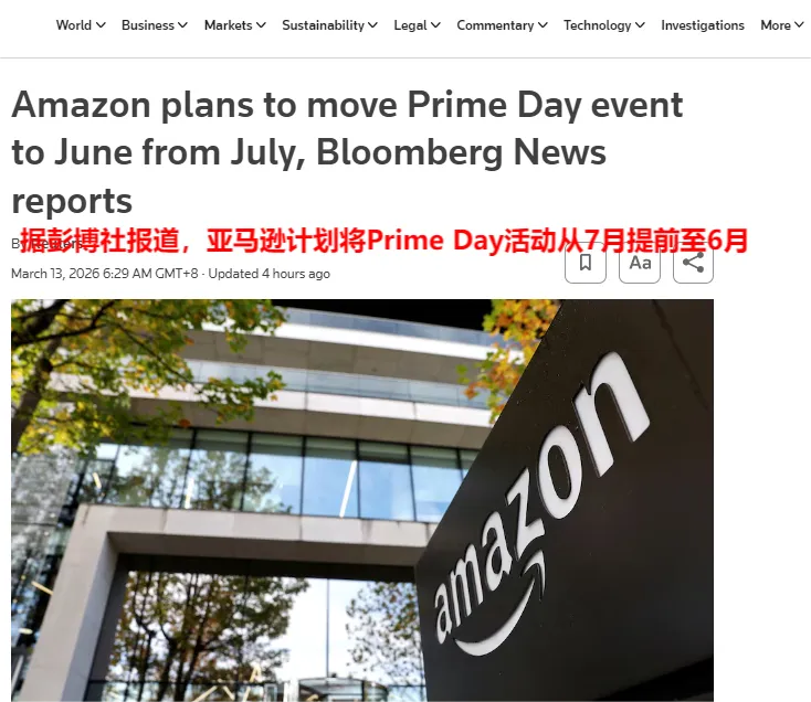 最近外媒都在报道,亚马逊正计划把一年一度的Prime Day大促,从一直以来的7月,提前到6月举行,据知情人士透露,大概率会在6月下旬,但因为还没正式官宣,具体时间还可能发生变动,亚马逊方面也没对此作出任何反应。