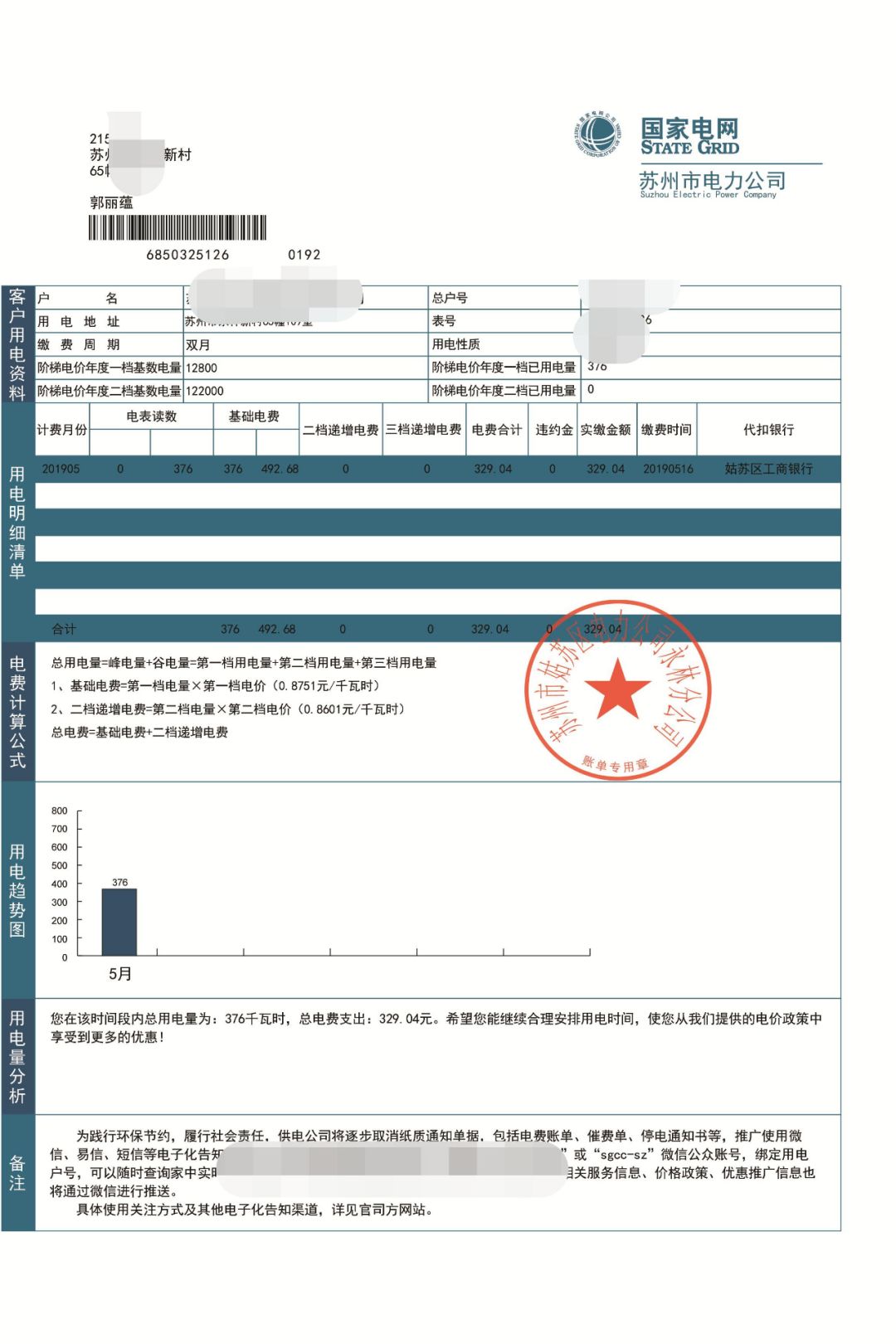 如果我们购买的账号资料(营业执照、身份证)没有问题,那么剩下的问题就是水电账单。以下是一份标准的水电账单: