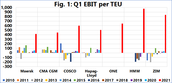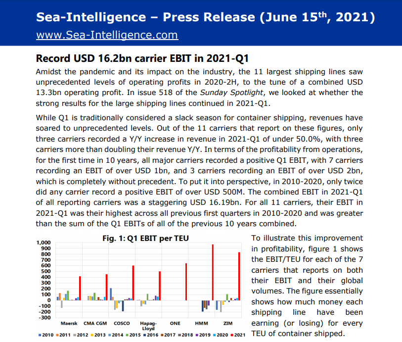 赚疯了!11家船司2021年第一季度狂赚162亿美元!5家船公司2021年第一季度利润超过去年一整年!