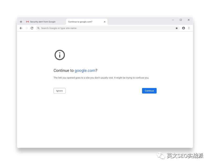 浏览器新设计安全机制,帮助用户更好识别有安全隐患的链接。它通过对比你过去的浏览记录,一旦发现网址相似但极可能是欺骗性的网址,便会提醒。