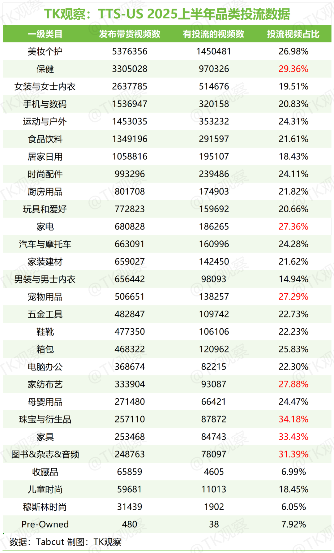 那么,什么品类比较爱投流呢? 我们看以下数据: