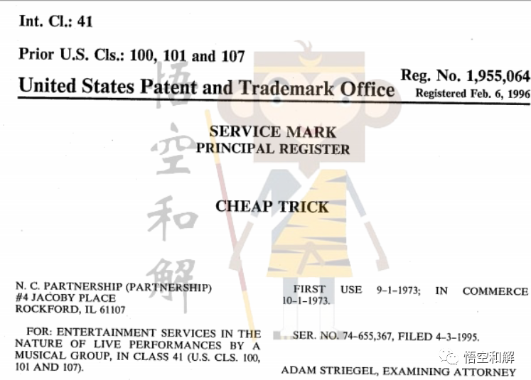 Cheap Trick注册在025和041大类: